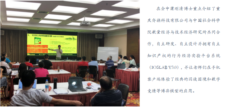 此次培训,蒲刚清博士提出的行为经济实验平台系统(IOSLAB V3.0),形式新颖、内容丰富,各位老师纷纷表示应进一步改革传统的课堂教学方式,借助新技术和新方法解决长期以来经济学偏重理论讲授而忽视动手实验的困境,把经济学理论教学与实践教学融为一体,学以致用。